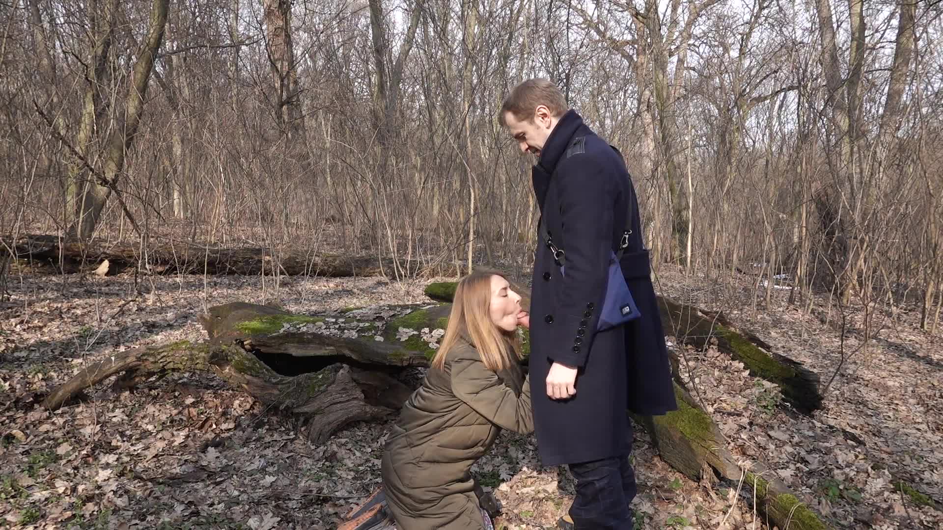 漂亮的女孩在第一次约会时在树林里做了一个甜蜜的快速口交 (ph60539a14b8143)